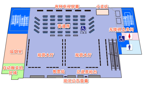 宽大优质的双人座席、单人座席、大量的屏幕设置、使您在宽敞的空间里享受比赛的乐趣。