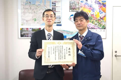 地域のみなさまからも高くご評価いただき、地元町内会より推薦され、行政より感謝状を戴きました。